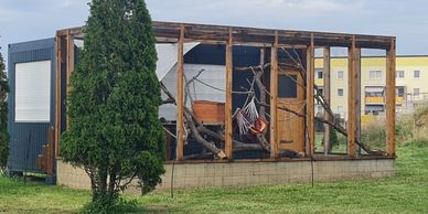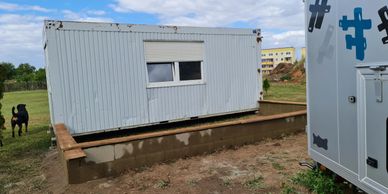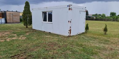 Dieser tolle 6,10 m lange 2,50 hohe und 2,50m breite Bürocontainer soll als isolierter Schutzraum dienen. Dieser wurde mühevoll entkernt und wird die nächste Zeit neu isoliert und mit OSB innen verkleidet .Es entstehen auch hier viele Kletter- und Versteckmöglichkeiten.