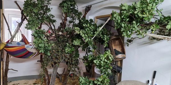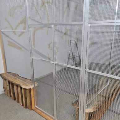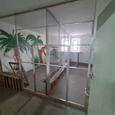Die im Zimmer befindlichen Volieren sind alle offen und frei zugänglich..